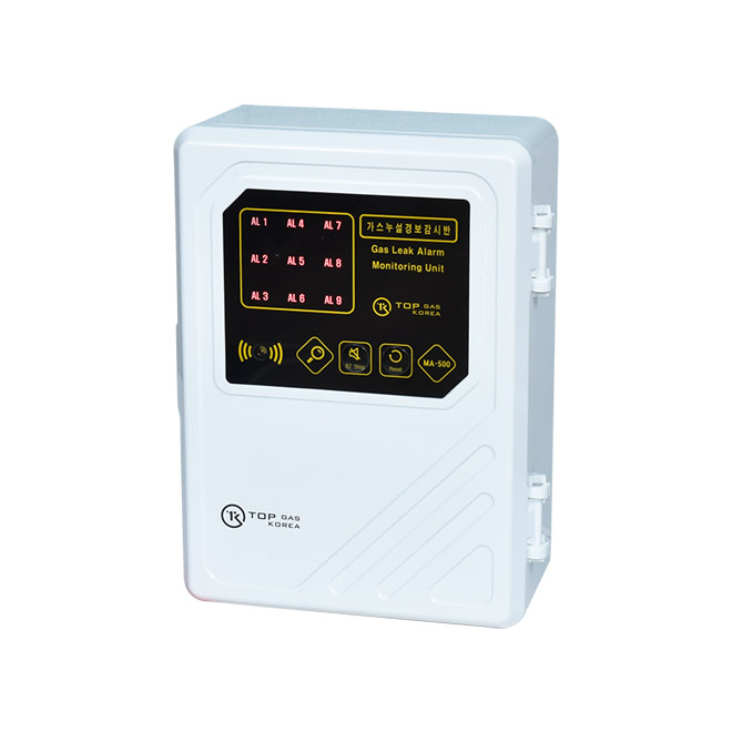 | The central monitoring panel receives the alarm signals from gas leak detectors installed in each area via a wired connection, allowing for real-time monitoring of the status of each location in the central control room. |
